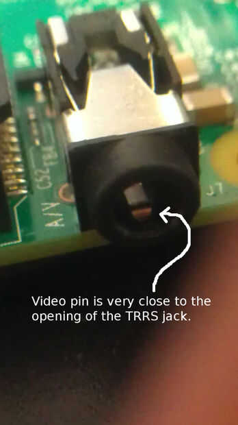 Si usted toma una mirada en la toma TRRS del Raspberry Pi 2, verás que se puede ver un pequeño diente metal que está muy cerca de la abertura de la toma. Este diente de poco es el pin de salida de vídeo. Está cerca del exterior puesto que en el diagrama anterior, el video pin en el conector macho estaba también en el mismo lugar.