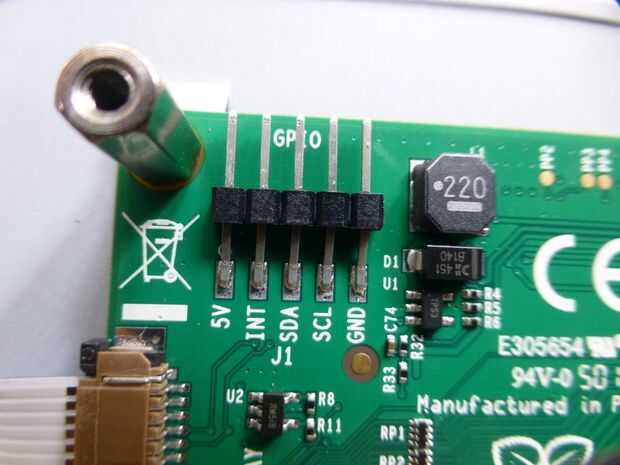 Ahora mira el tercer cuadro mostrando la entrada (o salida) de energía los pernos del adaptador de pantalla. Usted puede ver claramente los pasadores del extremo marcados como 5 V y tierra.