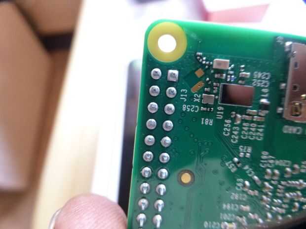 El interior es de pin en la parte superior con una soldadura cuadrada pin 01. Las 2 clavijas exteriores en la parte superior son DC 5 V y el tercer pin es tierra. Adjuntando el poder a los pines incorrectos puede dañar su Pi 3, así que tenga cuidado.