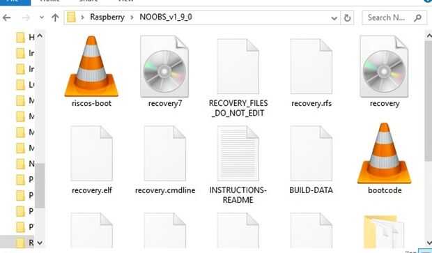 NOOBS descargada está en WinRAR Zip archivo tipo. Usted necesita 7 Zip para extraer los archivos desde el archivo.