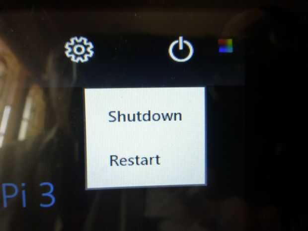 En la parte superior izquierda el icono de energía le permite reiniciar o apagar el sistema.