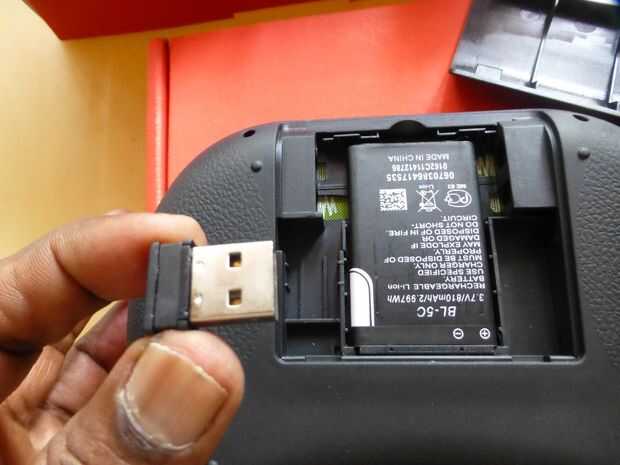 Si abres la parte trasera del teclado, se encuentra la batería y un adaptador USB. Retire la llave USB e instalarlo en cualquiera de los puertos USB de la Pi 3. El teclado inalámbrico tiene un interruptor ON-OFF que es muy práctico para mantener el teclado cuando no esté en uso.