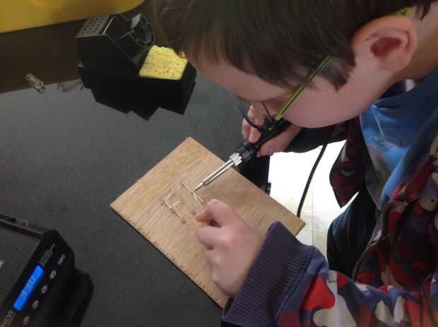 El bit final de soldadura es conectar un alambre a cada capa del cubo que puede vincularse a la protoboard.