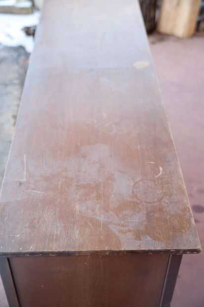 El gabinete fue una paliza. Tenía pintura blanca y marrón en él. Le di un desgaste rápido de lija y un trapo abajo una mancha de la nuez. Opté por conservar las marcas de desgaste en la madera y no hacer un completo trabajo de repintado. La pierna rota consiguió unos pocos tornillos y pegamento.