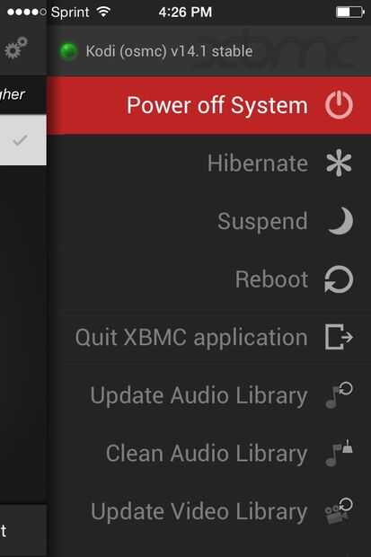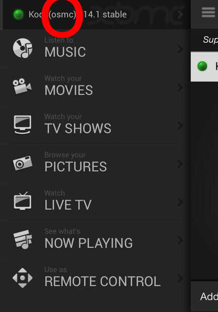 Haga clic en nombre de la OSMC en la parte superior de la aplicación