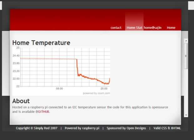 Nano i2cpy.py leer el código de comentarios, la biblioteca de Adafruit que se incluye en los archivos es muy buena para las operaciones de I2C y debe ser utilizada para evitar errores comunes de I2C... gracias a ADAFRUIT... usted debe poder incrustar el gráfico de temperatura en su sitio web, y anfitrión en la frambuesa pi consulte este tutorial.