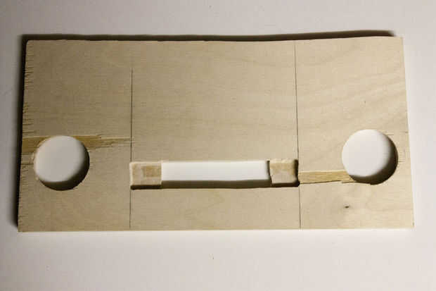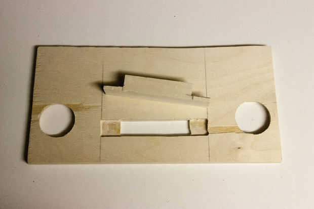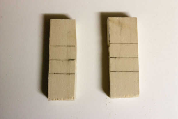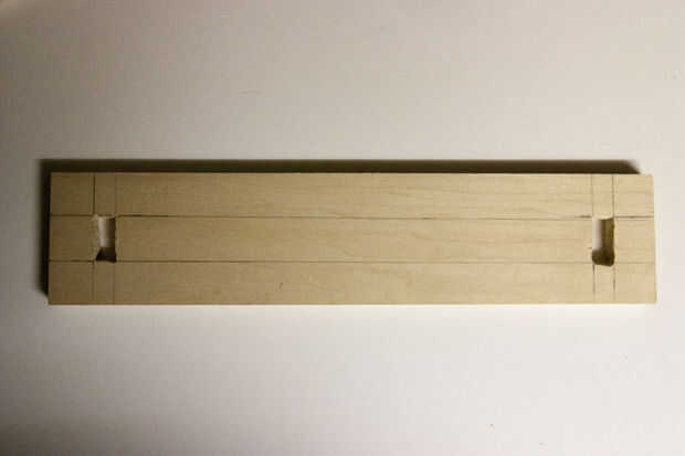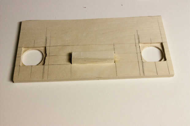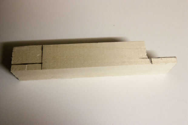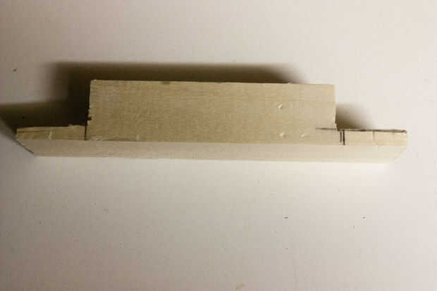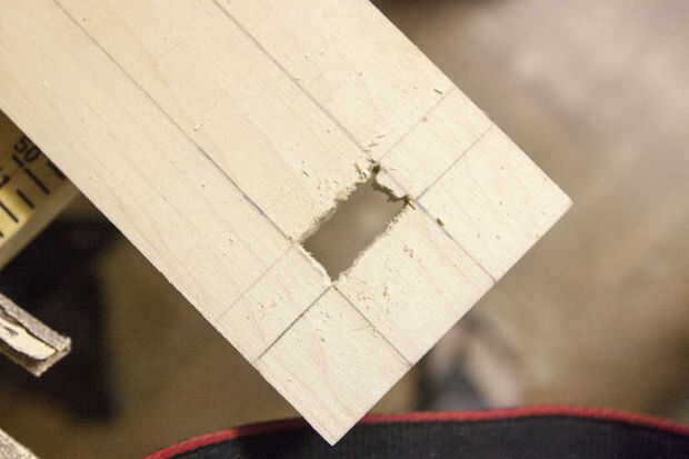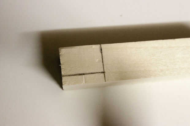 - En la parte izquierda de la 1 x 12, corte 1/2 x 1 pulgadas rectángulo con un margen de 1 pulgada desde el lado superior e izquierdo.