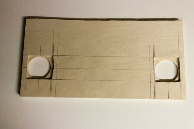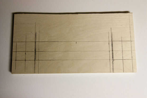 - Mide 1,5 pulgadas desde la parte inferior y a 7/16 de pulgada de los lados y trazar una línea de 2 1/8" horizontal y verticalmente.