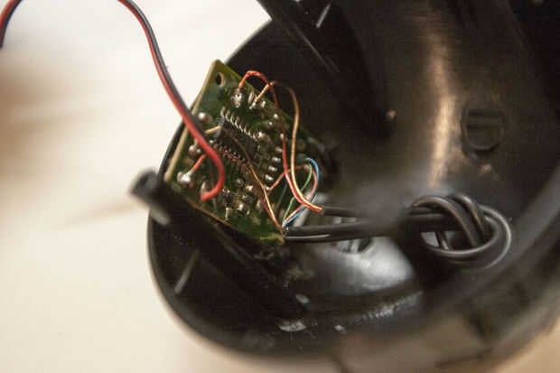 • Por el otro altavoz que tiene el control de volumen, toma nota de donde se encuentran los cables. Desoldar o cortar los cables de los circuitos excepto el cable negro y rojo para el otro altavoz.