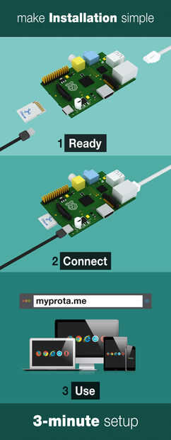 Conectar cable HDMI de la Raspberry Pi a la pantalla le mostrará a la guía. Sin embargo, el PROTA es un servidor OS con interfaz de usuario Web para control y evaluación de su sistema. Abra un navegador HTML5 apoyo a uno de sus teléfonos inteligentes u ordenadores portátiles y acceder a myprota.me. Asegúrese de que sus dispositivos y el PROTA son en la misma red.