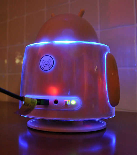 Como la gama del lector no es tan buena, he puesto una pegatina con un logotipo de RFID en el exterior del robot. Este es también el único cambio a la Andrés de KNG se puede ver desde el exterior. Todas las funciones estándar todavía funcionan, puedo reproducir MP3 desde una tarjeta SD y también utilizar el robot como altavoces para el teléfono. Esto puede parecer un truco limpio, que es una buena cosa. Sin embargo, cuando la demo, no todo el mundo está convencido de que se ha añadido la funcionalidad RFID por mí... :-)