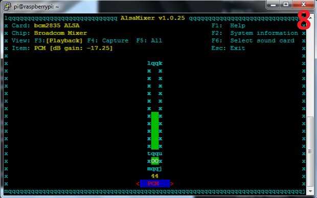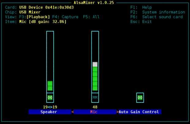 Esto presenta una visión más gráfica (imagen 8,9,10) del volumen y la información sobre el dispositivo de audio USB. Utilizando las flechas del teclado, seleccione la columna de volumen y ajuste el volumen más alto o más bajo, depende de sus necesidades. Siempre que sea posible, mantenga el nivel de volumen por debajo de 80-90% para evitar cualquier distorsión.