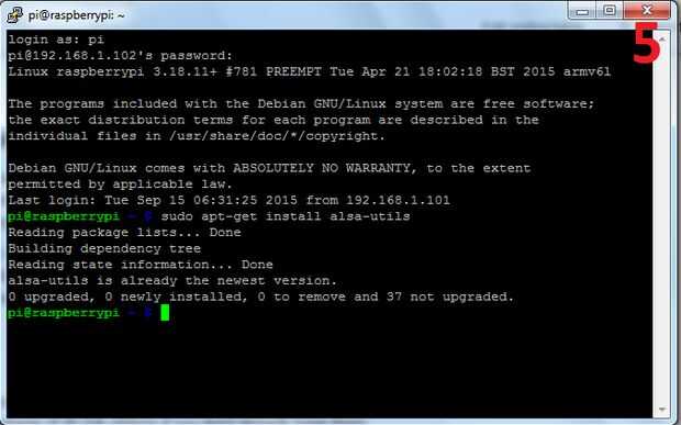 Que ya tenga este paquete en su sistema, pero este comando no hará ningún daño incluso si lo hace. Esto instalará un paquete de utilidades ALSA si no ya tienes (ALSA significa avances Linux Sound Architecture). Si desea saber más acerca de ALSA a continuación, siga el enlace: http://www.alsa-project.org/main/index.php/Main_Page.
