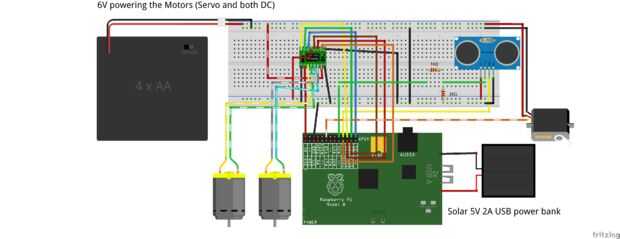 - Frambuesa Pi Pin 12---> cable de señal del motor servo (cable naranja a veces)