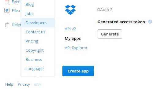Luego irás a la página de configuración de la aplicación dentro de Dropbox. Hay sólo una cosa más, que usted necesita hacer aquí - mismo generar un Token de acceso. Para ello, desplácese hasta la sección de 'OAuth 2' y 'token de acceso generado', haga clic en el botón 'Generate'.