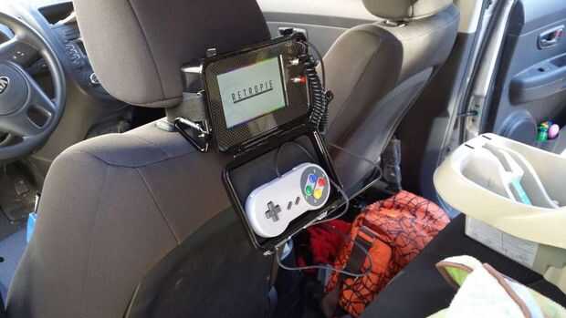 Ahora que el pegamento es todo hacia arriba, suavemente había enrollado el cable del controlador y utiliza una paz de atadura de cables del Velcro para mantenerlo enrollado. Luego envuelve el cable de carga en el controlador y cierra suavemente la tapa para asegurarse de que se cierre y cierre. Después de eso rosca una paz de correa elástica de Velcro por las ranuras moldeadas en el lado de la caja pelican y atadas a la espalda de mi apoyo para la cabeza. Todo había montado en la caja de tal manera que la tapa funciona como un resto del controlador cuando está en el coche. La tapa también apoyos la pantalla en un ángulo óptimo si la consola se utiliza en una mesa.