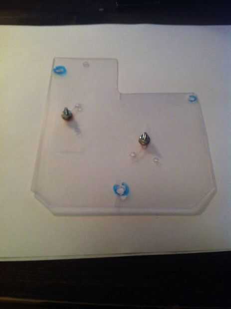 La tercera imagen muestra la hoja con tornillos de conexión. Estos eventualmente fijará la Pi a la hoja.