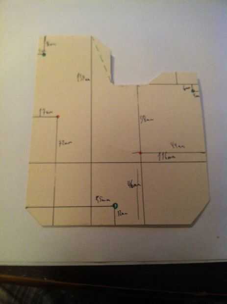 La primera foto es la plantilla que corte de. La segunda foto es la hoja real que he utilizado. Obviamente he cometido algunos errores conseguir la hoja para parecerse a la plantilla. En particular, accidentalmente rompí la pestaña en la parte superior derecha, que todavía creo que sería mejor tener pero bueno. También puse varios agujeros en los lugares equivocados. Las medidas de la plantilla están cercanas pero realmente perforé por poner la hoja en su lugar y marca.