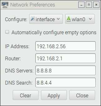 Empezar por configurar la dirección IP a estática haciendo clic derecho sobre el icono de red en la esquina superior derecha y seleccione (dhcpcdui) configuración de las redes WiFi.
