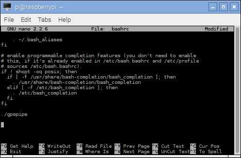 Desplácese hacia abajo hasta el fondo y agregar la línea: . / gpspipe