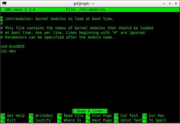 # / etc los módulos: módulos del kernel en tiempo de arranque. SND-bcm2835