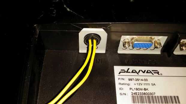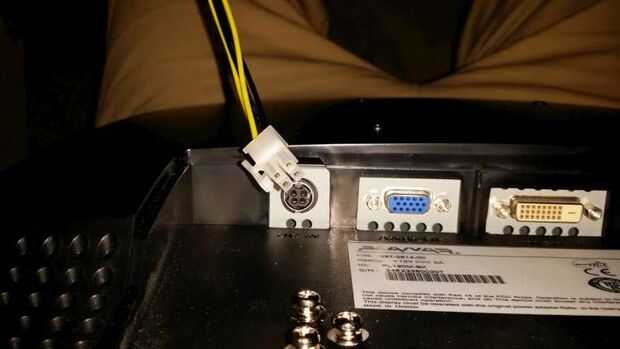 Como la potencia de suministro con este monitor tenía que quemada olor. Obtuve un conocido trabajando para encontrar las salidas de pin. 2 al frente terminó siendo de tierra y el 2 hacia la espalda son + 12v. Oye y como se puede sacar el monitor para asegurarse de que no estoy perdiendo mi tiempo. al menos encendido tan bully para mí.