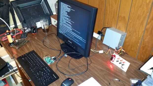 Dio un salto de fe las en el zócalo atascado, conectado mi banco superior de alimentación mantiene el extintor práctico y enchufada la fuente de alimentación y utiliza una vara de yarda en mi regleta... Hey no hay chispas y funciona. Tiempo para garantizar esta chapuza, apliqué un pegote generoso de pegamento caliente para ayudar a mantener los cables de la caída de la toma y proporcionar un poco de aislamiento eléctrico.