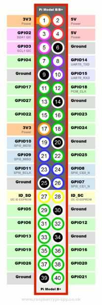 La parte difícil de este paso es identificar el pinout de la versión de la Raspberry Pi. Hay realmente dos pines diferentes numeración esquemas para la frambuesa Pi GPIO: el era el esquema de numeración proporcionado por los creadores de la frambuesa y la otra se basa en el pinout del chip Broadcom BCM2835. Para obtener más información, puede consultar el siguiente post del Foro: GPIO Header Pinout aclaración
