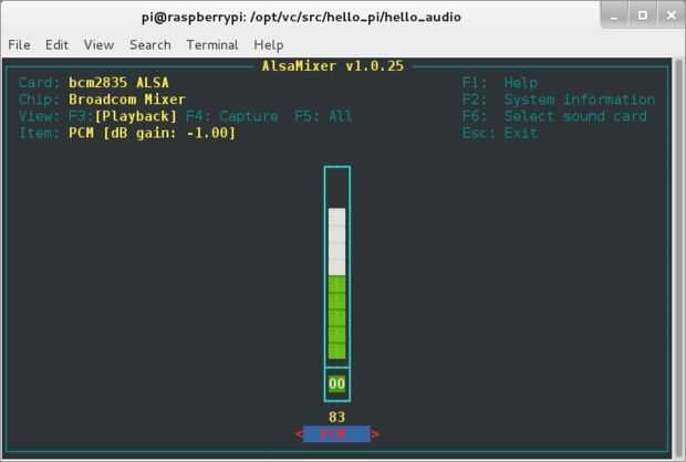 Es necesario comprobar el sonido puesto nivel con alsa mixer. Mina fue fijado manera baja. Utilice la flecha hacia arriba para aumentar el volumen.