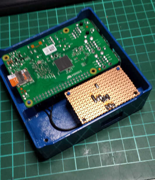 Usted puede encontrar que usted tiene que recortar la caja un poco para obtener las tablas para caber comodamente. En particular, no Asegúrese de que ninguna tensión en la frambuesa pi conectores Audio, USB y HDMI. Recorte los agujeros de la conector con un cuchillo de la manía aguda si es necesario. Pegue la pieza de metacrilato rojo en la abertura rectangular en la parte delantera de la caja junto al tablero de IR.