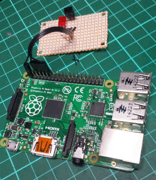 Conecte la Junta IR la frambuesa pi GPIO, teniendo cuidado de asegurarse de que los conectores de que todos van a los pines de la derecha.
