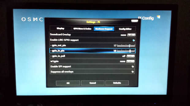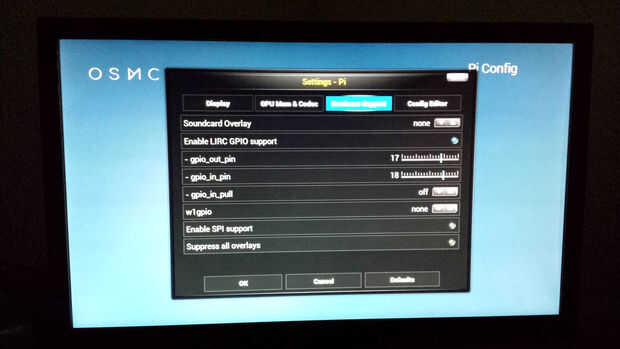 el config.txt archivo en el directorio de la osmc en la frambuesa pi, luego seleccione la configuración adecuada en el menú de configuración de la OSMC.