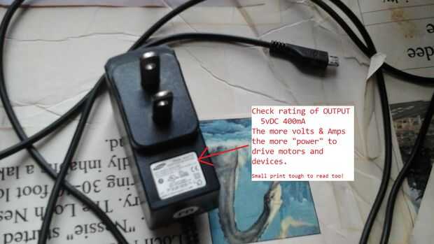 Tienes un juguete viejo, Electronica, algo roto alrededor de la casa que ya no utiliza. Estos viejos cargadores y enchufes de energía de DC son impresionantes, causa son viejos o conector está arruinado o dañado, todavía se pueden utilizar para cortar y construir cosas. Aprender a leer sobre corriente continua, (ver la imagen del cargador de celular viejo son en su mayoría 5V, como éste y la impulsión actual es bastante baja como sólo 400mA).