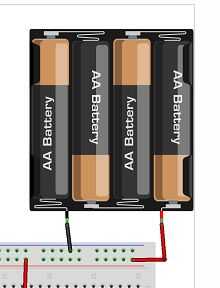 Puede utilizar la energía de las baterías para funcionar sus motores también. Comprar baterías de 6V DC, (Nota: las baterías ya están CC) para impulsar sus motores. (ver ejemplo del cuadro anterior).