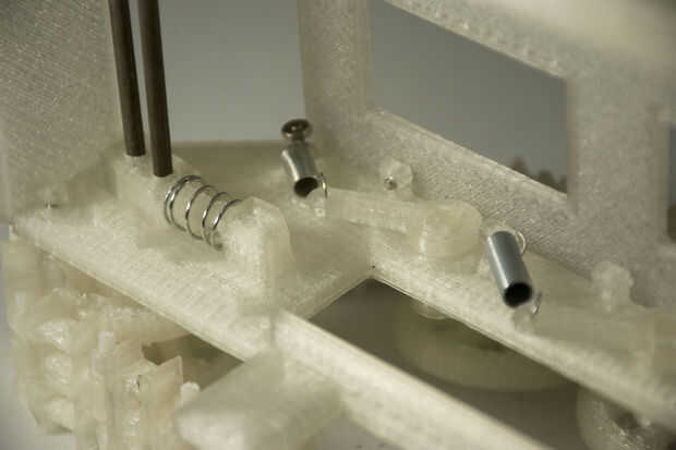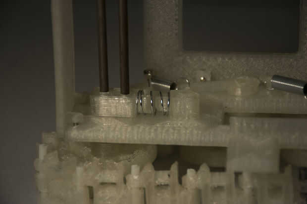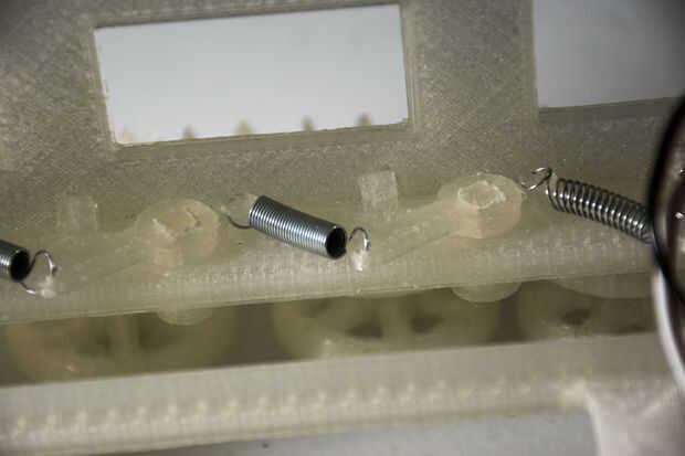Todo lo que tengo son algunos bobina los resortes, no hidráulicos, sin resorte. Experimenté algunos mecanismo de barra de torsión con PLA al principio. (Barra de la torsión suspensión es común en algunos tanques). Resulta que después de un giro de la pareja, el bar del PLA impreso Haz suave y eventualmente se rompa. ABS puede ser mejor para este propósito pero nunca probado. Así que, después de más investigación, encontré suspensión Christie diseño, aquí es un corto video muestra cómo funciona.