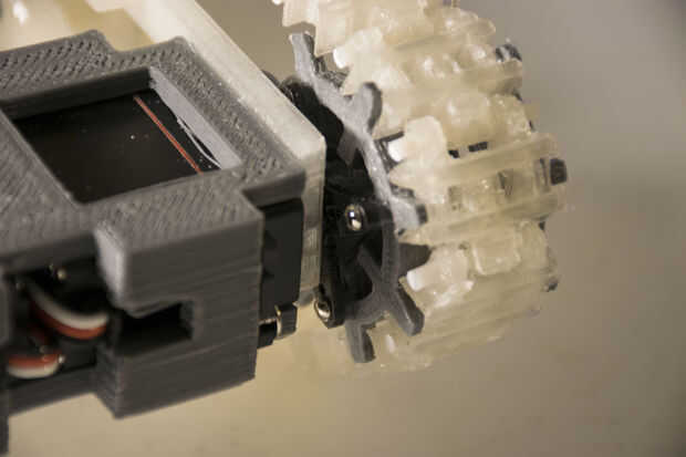 Luego Imprimí la cubierta para servos y asegúrese de que la rueda motriz puede fijarse en el brazo de servo con tornillos.