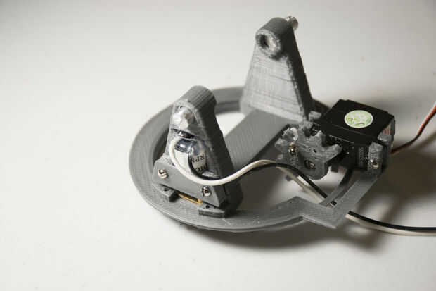 En la base de la torreta, he añadido un micro servo, para la inclinación y un micro motor de la C.C. para la rotación.