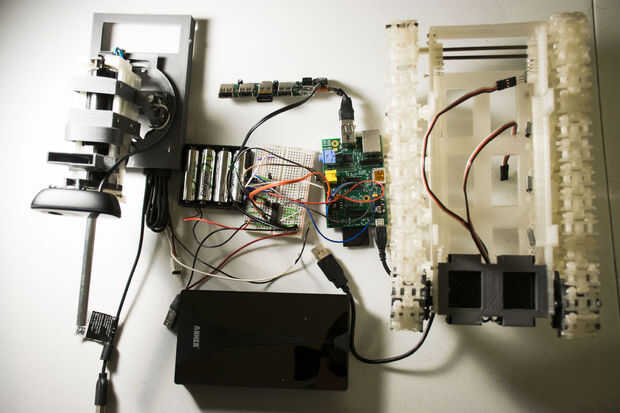 3 servos, rojo a 6V, negro a tierra y el pin de señal conectado a los pines GPIO.