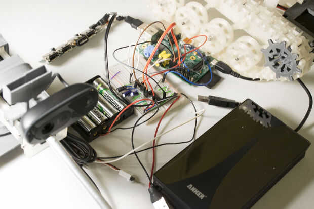 Entonces pensé que quizás podía energía los servos con el puerto del concentrador USB. Funciona, pero la conexión wifi es muy muy inestable.