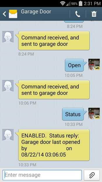 Estado - ver que finalmente abrió la puerta del garaje, y si el servicio está habilitado o deshabilitado. Esto también sube una foto de su estado de la puerta del garage (YourWebSite.com/uploads/garagepic.jpg)