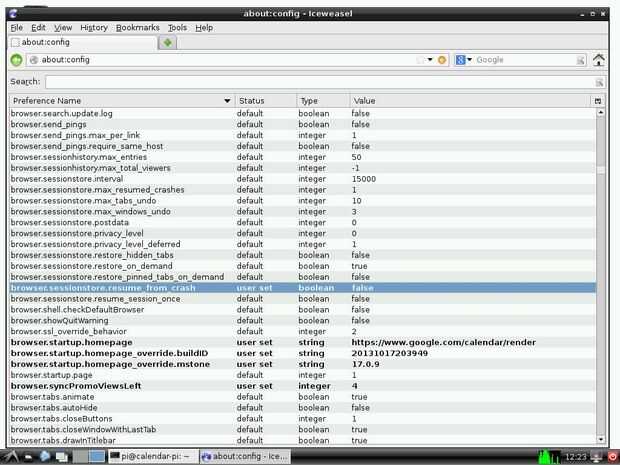 También queremos Iceweasel inicie automáticamente por lo que necesitaremos cambiar las opciones de autostart.