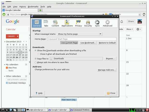 Una vez completa Iceweasel debe saltar en el menú en internet, abrirlo por lo que podemos empezar a configurar. Primero abre tu calendario de google y guardar la contraseña en caso de que haz registrado hacia fuera en algún momento. Listo calendario de google como tu página de inicio.