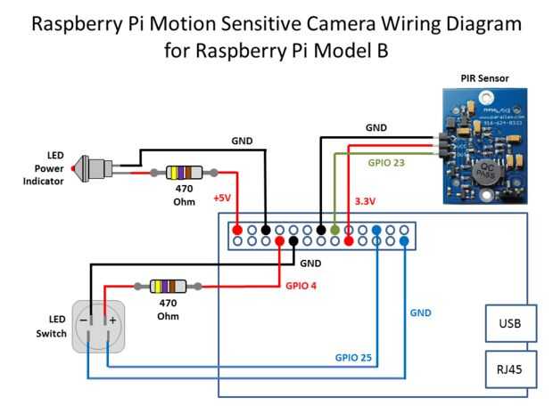 El diagrama muestra el cableado de los distintos componentes de la Raspberry Pi.