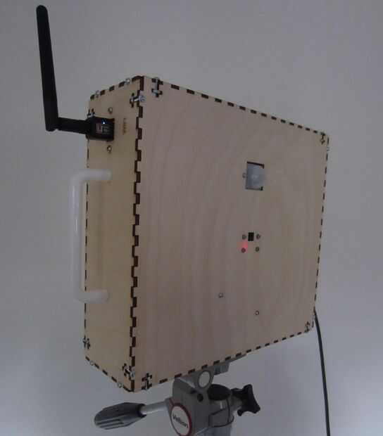 El caso de la cámara se hizo con 1/8" espesor abedul cortado usando un cortador láser de Epilog Helix.