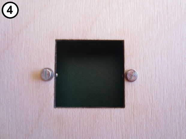 - Coloque las dos arandelas sobre los agujeros de fuera (no grabado) del panel e inserte los tornillos (foto 4).