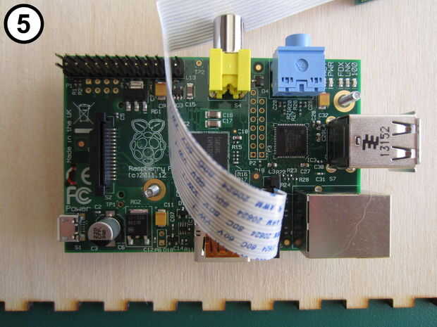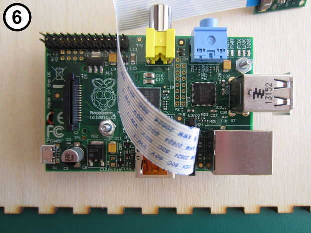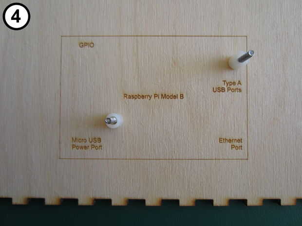 - Asegure la frambuesa Pi con las tuercas (foto 6). No apriete demasiado las tuercas: deben ser "mono ajustado", no "gorila apretado".