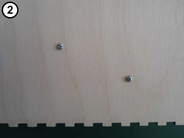 - Inserte los tornillos en el lado exterior (no grabado) del panel (Foto 2).