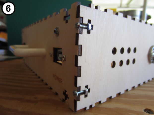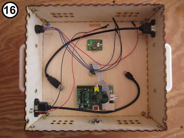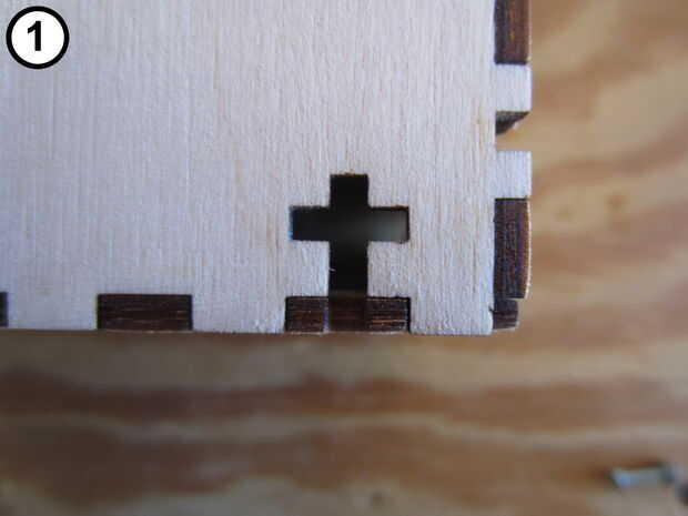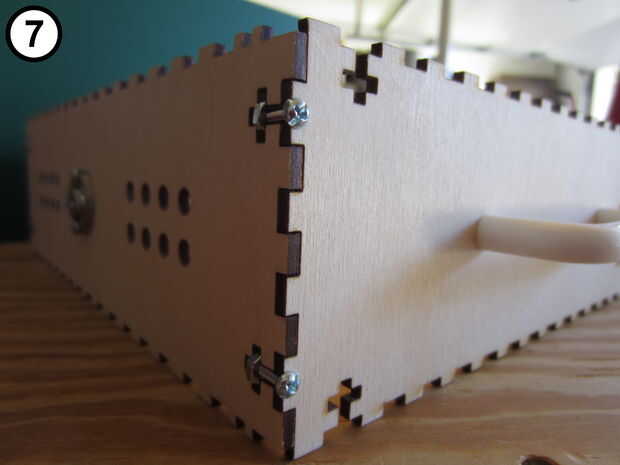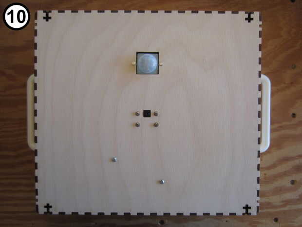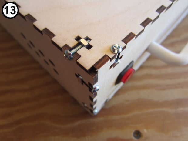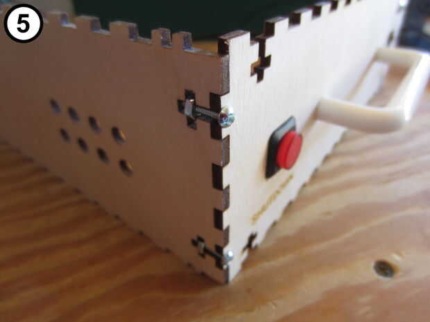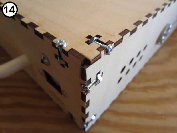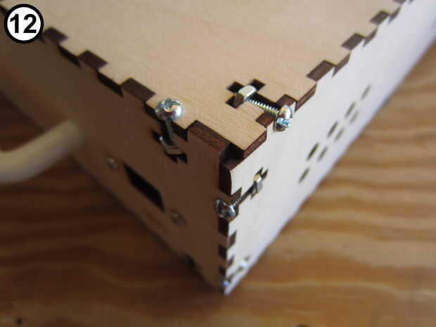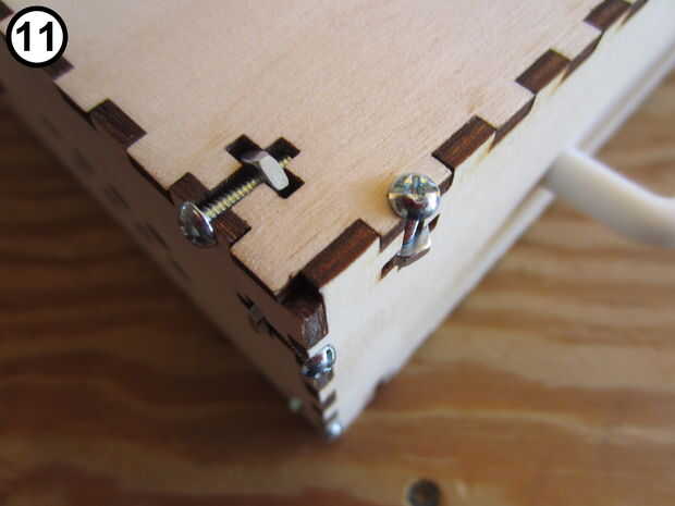 El caso de frambuesa Pi movimiento sensible cámara se lleva a cabo junto a #4-40 1/2" tornillos y tuercas: no es necesario pegar. La forma de hacer esto es a hilo de rosca de las tuercas en los tornillos (Foto 2), los paneles junto (Foto 1), coloque el tornillo en la ranura en T (Foto 3) y apriete suavemente con un destornillador mientras sujeta la tuerca con los dedos. Cuando el caso entero se mantiene unida de esta manera, es muy robusto.