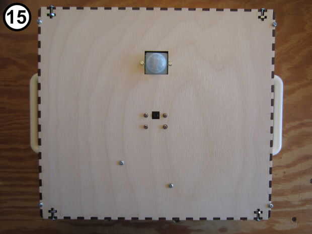 El caso debe ser firmemente ligado y parece fotos 15 y 16. El panel trasero se sujetará para el caso en el paso 18.