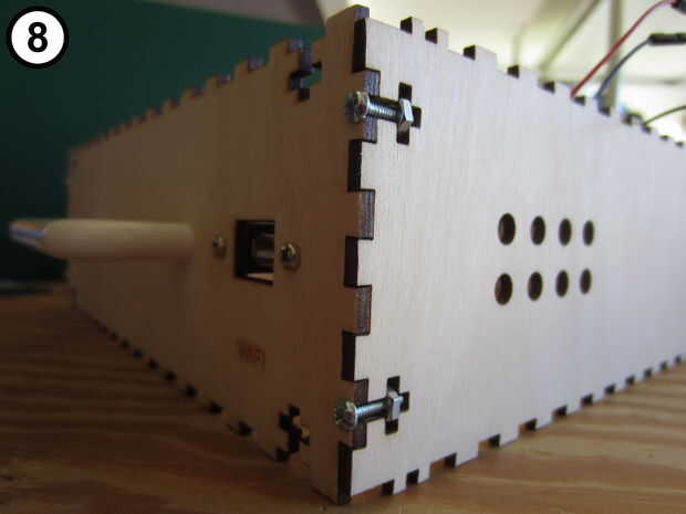 - Conecte el otro extremo del panel derecho al panel superior (Foto 8). Los paneles laterales deben ahora todos Unidos y sujetar con los tornillos y ranuras en T.